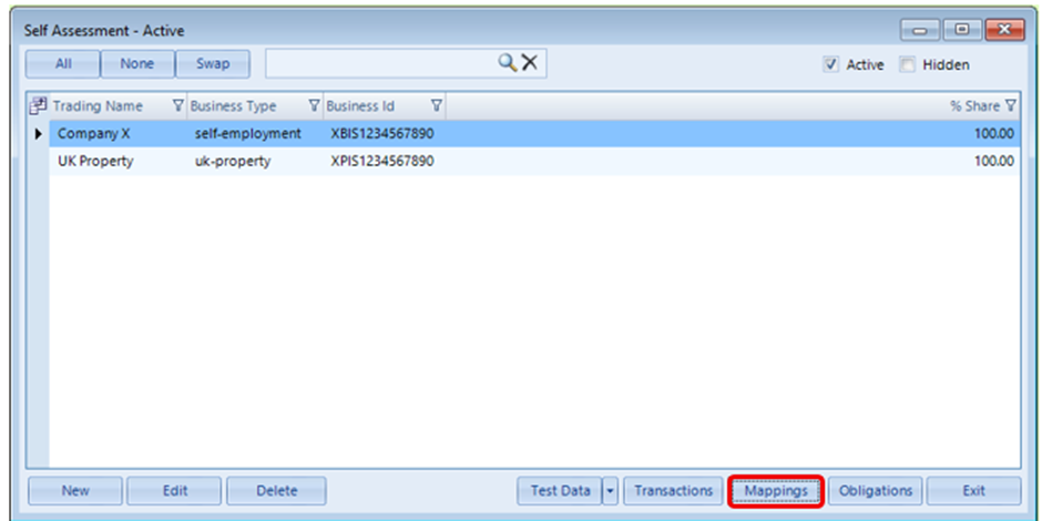 Where a company contains more than one Self Assessment Tax Entity (i.e. multiple MTD submissions), each entity requires its own mapping. The same nominal code may be assigned to different HMRC categories, as transactions are subsequently directed to the correct MTD entity using Enterprises or Analysis codes.