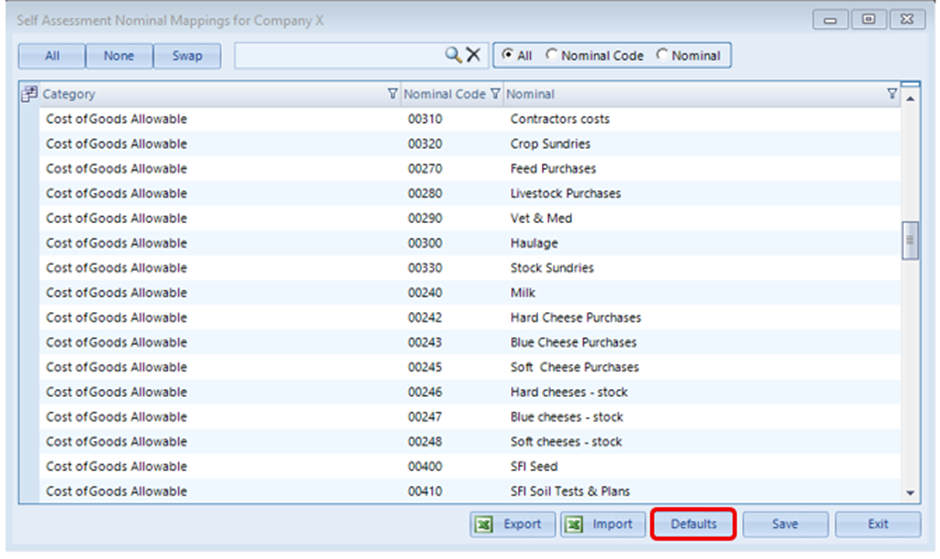 A default set at Analysis level will therefore override settings at all other levels. If the account contains only one Taxable Entity, no defaults are required; simply map each trading nominal code to the appropriate HMRC category.