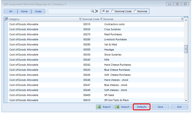 To ensure that the appropriate tax return categories are correct, you will need to map each of the income and expenditure nominals on your chart of accounts to the appropriate Self Assessment category. Balance sheet nominals are not required, as they are not included in the quarterly submission.