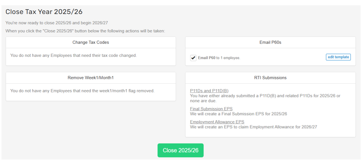 HMRC rules state that an employee should be made a leaver upon their final pay. If there are any employees that are not returning in the new tax year, mark them as leavers now.
