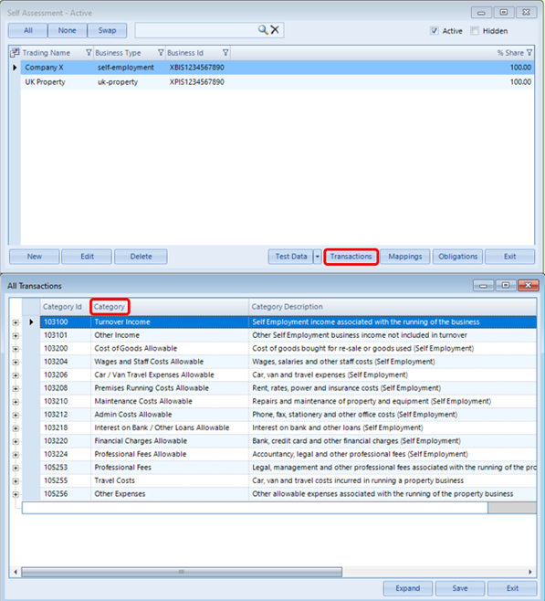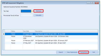 - Select Transactions to view all entries for the selected period - Transactions are grouped by HMRC Category