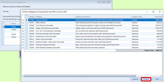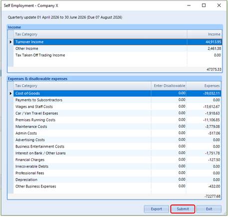 Review the income and expenditure overall amounts, as HMRC expects quarterly updates to be as accurate as possible, even though you can make corrections later in the year. This report can be exported to Excel if required.